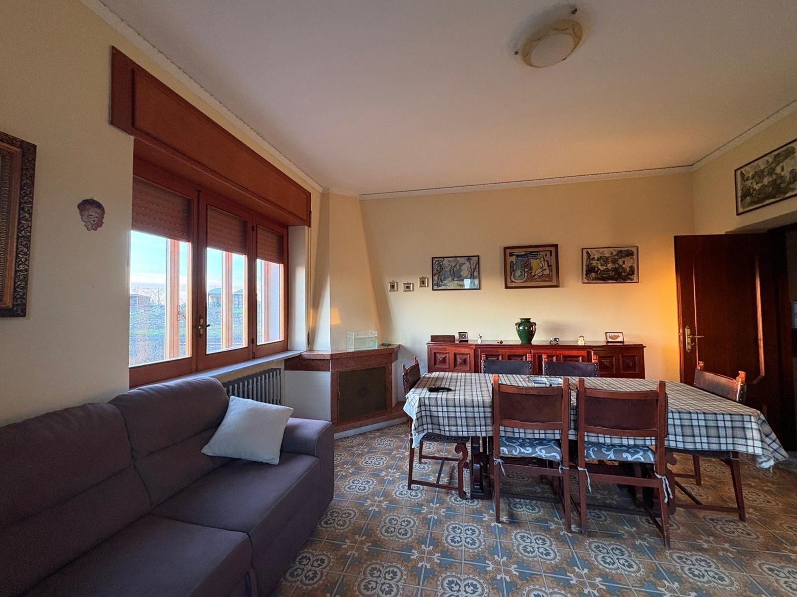 Con una superficie di circa 200 mq, la casa si sviluppa su due livelli ed è soleggiata dalla mattina alla sera, in quanto tutti gli ambienti affacciano su degli ampi e luminosi balconi. Al piano primo ci accoglie un ampio soggiorno con camino, una cucina abitabile, due camere da letto ed un bagno. Al piano terra troviamo ampi depositi utili per riporre la legna, gli attrezzi per il giardino, ecc. La casa è dotata di riscaldamento a radiatori con caldaia a gas e si trova in una zona servita da acquedotto illuminazione pubblica e fogna comunale. La proprietà comprende circa 3000 m² di