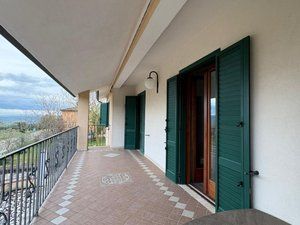 L'esterno è altrettanto affascinante: un ampio giardino verdeggiante circonda la casa, mentre un spazioso terrazzo sul lato posteriore è ideale per momenti di relax all'aria aperta. Circondata da circa 12.500 mq di terreno agricolo piantumato con nocciole, ulivi e alberi da frutto, questa villetta rappresenta un'opportunità unica per vivere in armonia con la natura.